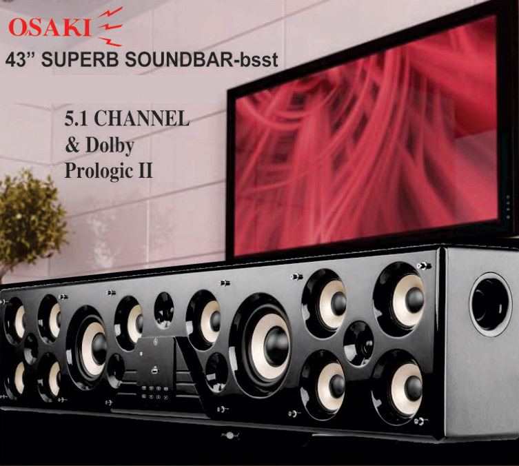 OSAKI SUPERB Soundbar-bsst 5.1 Channel HD Processing with Dolby Prologic II experience. mini CINMA + singalong karaoke + loud party music = all in one integrated music system.